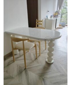 ▪️ Chất liệu: Chân gỗ tự nhiên sơn PU 2K, Mặt Đá Terrazzo chống trầy, chống ố