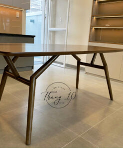 Bàn Ăn Gỗ Oval Chân Tròn Chạy Rảnh