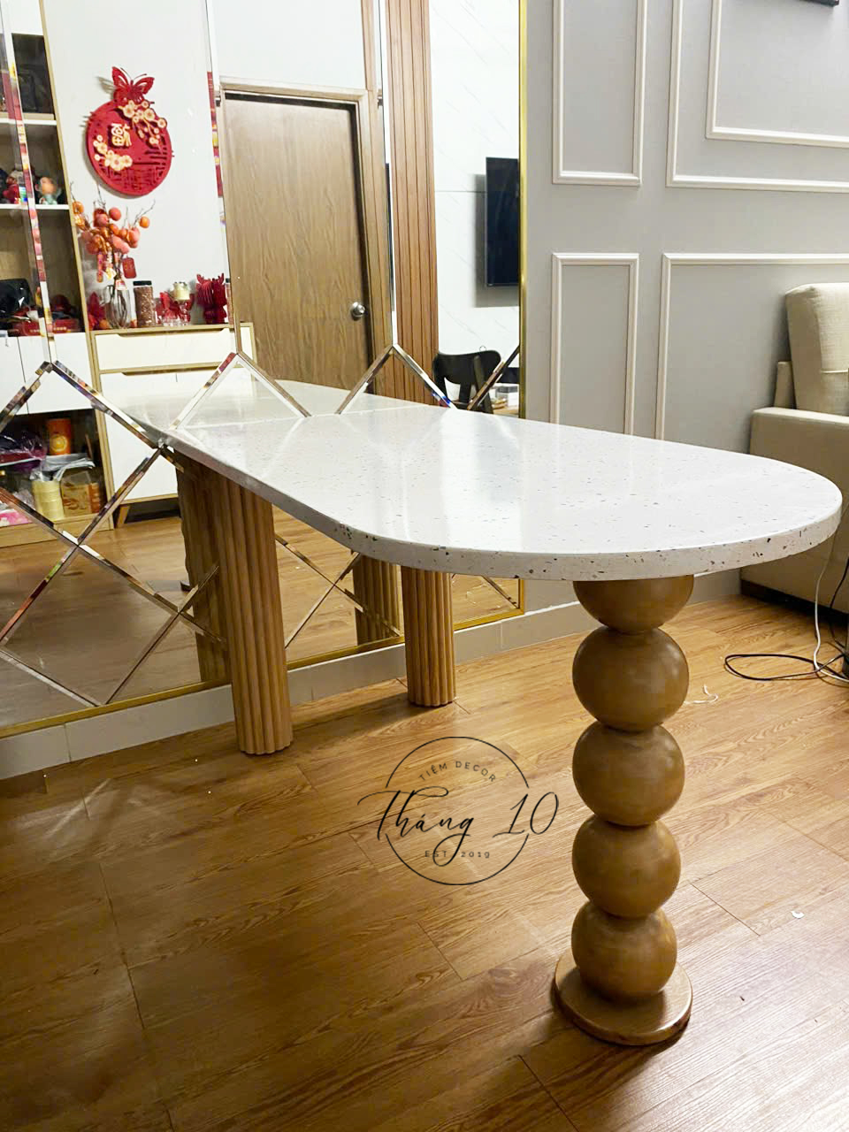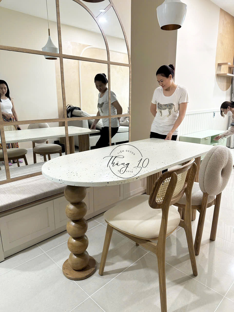 BÀN ĂN MẶT ĐÁ TERRAZZO, 1 CHÂN BI 2 CHÂN CHẠY RẢNH #tiemdecorthang10