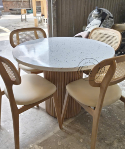 ▪️ Chất liệu: chân gỗ tự nhiên sơn PU 2K, mặt đá terrazzo