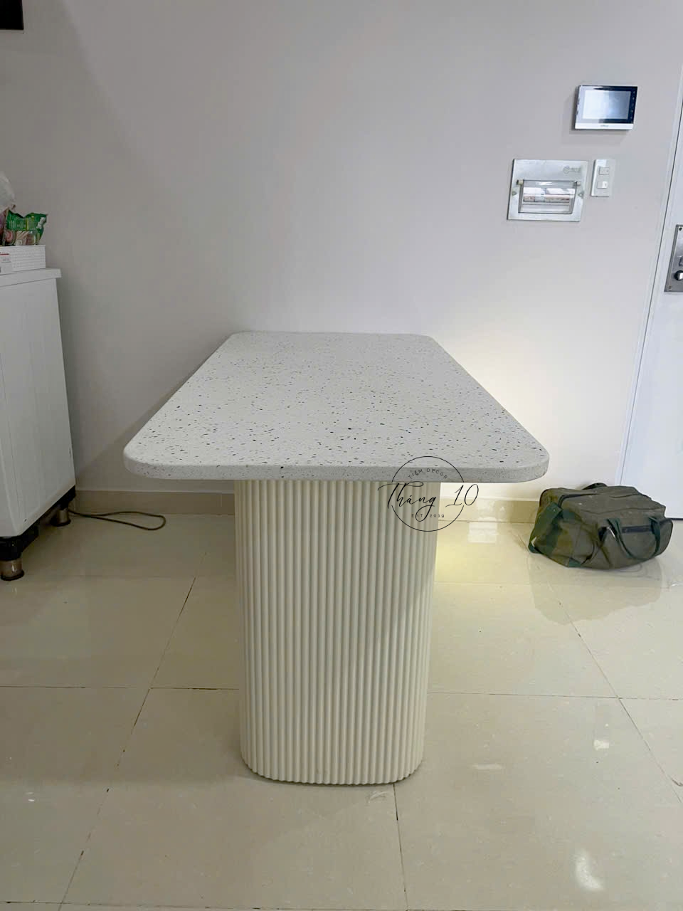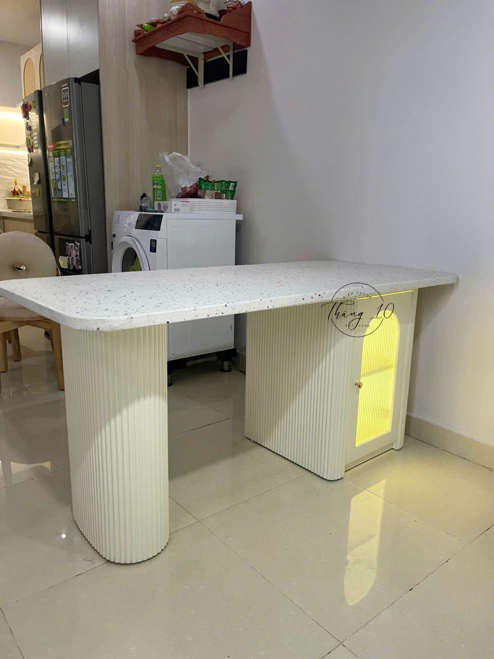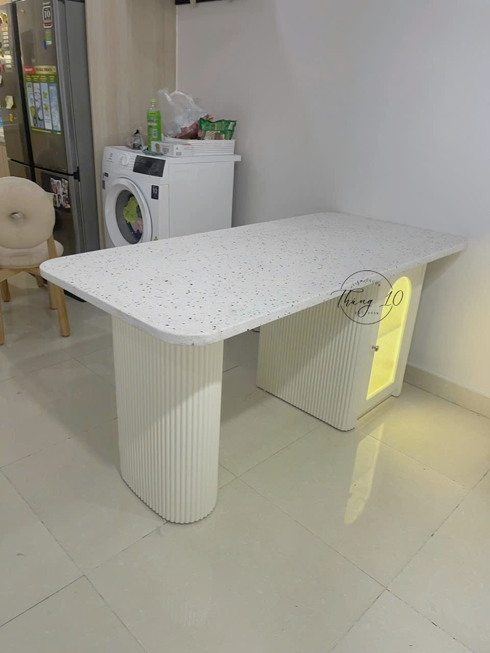 Bàn Đảo/ Bàn Ăn Có Tủ Mặt Chữ Nhật Bo Góc, Mặt Đá Terrazzo Cao Cấp – Liên Hệ Trước Khi Đặt Hàng Không Có Sẵn