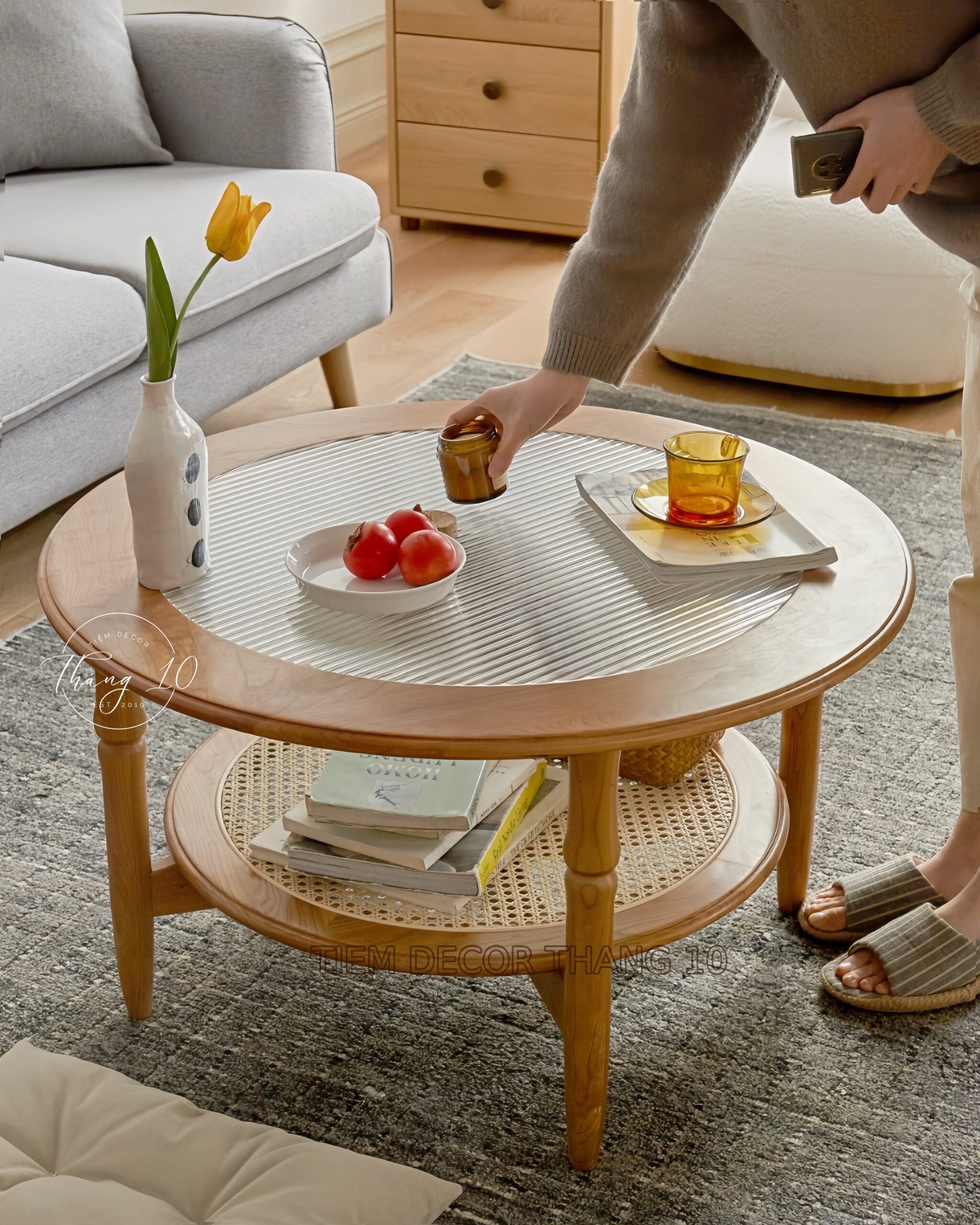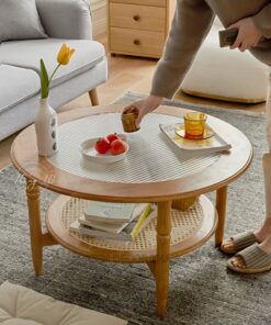 Bàn Sofa MYKOLA Tròn Mặt Kính Sóng Phong Cách Vintage Cao Cấp – Liên Hệ Trước Khi Đặt Hàng Không Có Sẵn