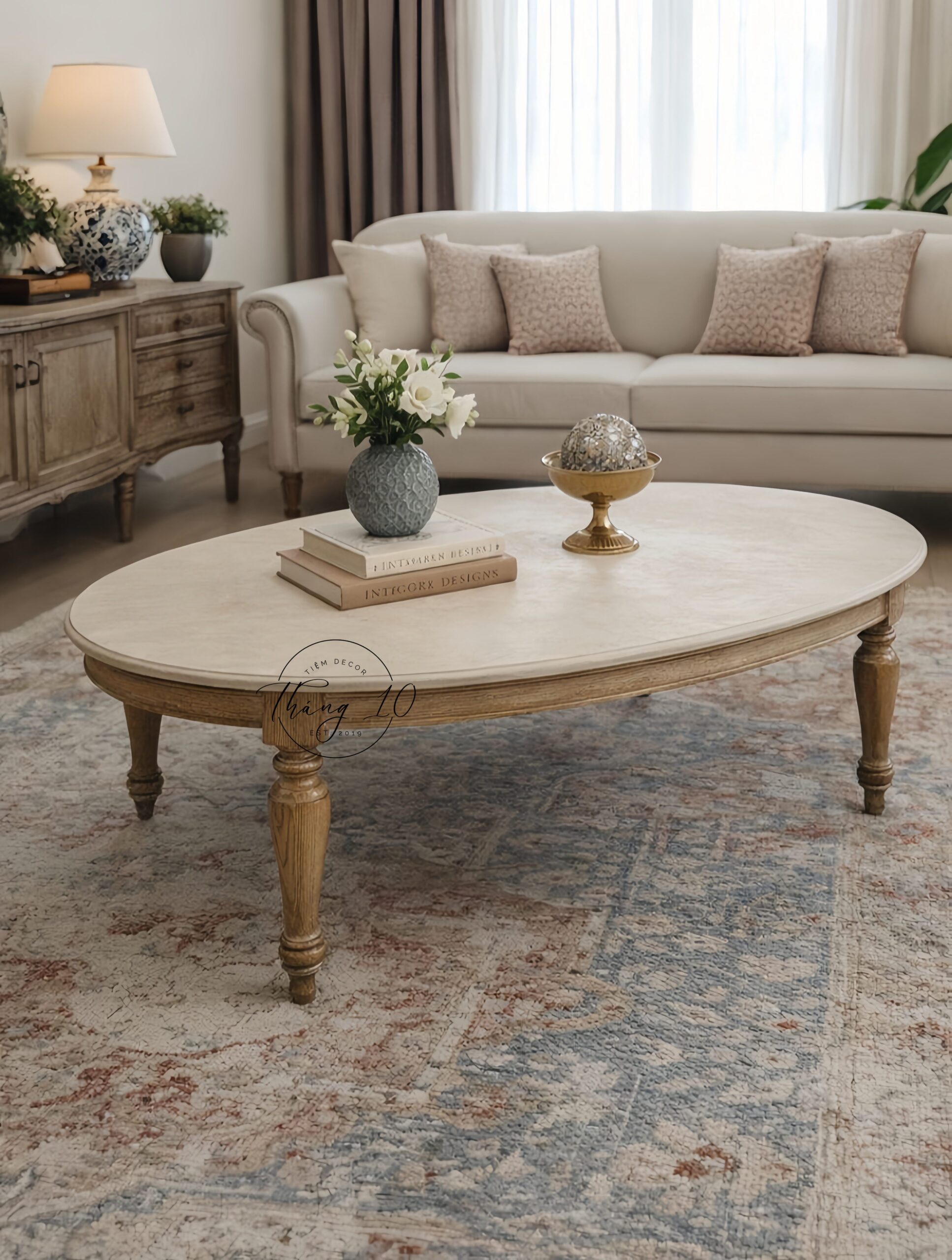 Bàn Trà/ Bàn Sofa Oval Gỗ Tự Nhiên COUTIR Tân Cổ Điển Cao Cấp – Liên Hệ Trước Khi Đặt Hàng Không Có Sẵn