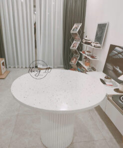 BÀN ĂN MẶT ĐÁ TERRAZZO, CHÂN GỖ CHẠY RẢNH