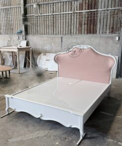 Giường Gỗ Công Chúa Chạm Khắc Tân Cổ Điển, Đầu Giường Cong Bọc Đệm Cấp – Liên Hệ Trước Khi Đặt Hàng Không Có Sẵn