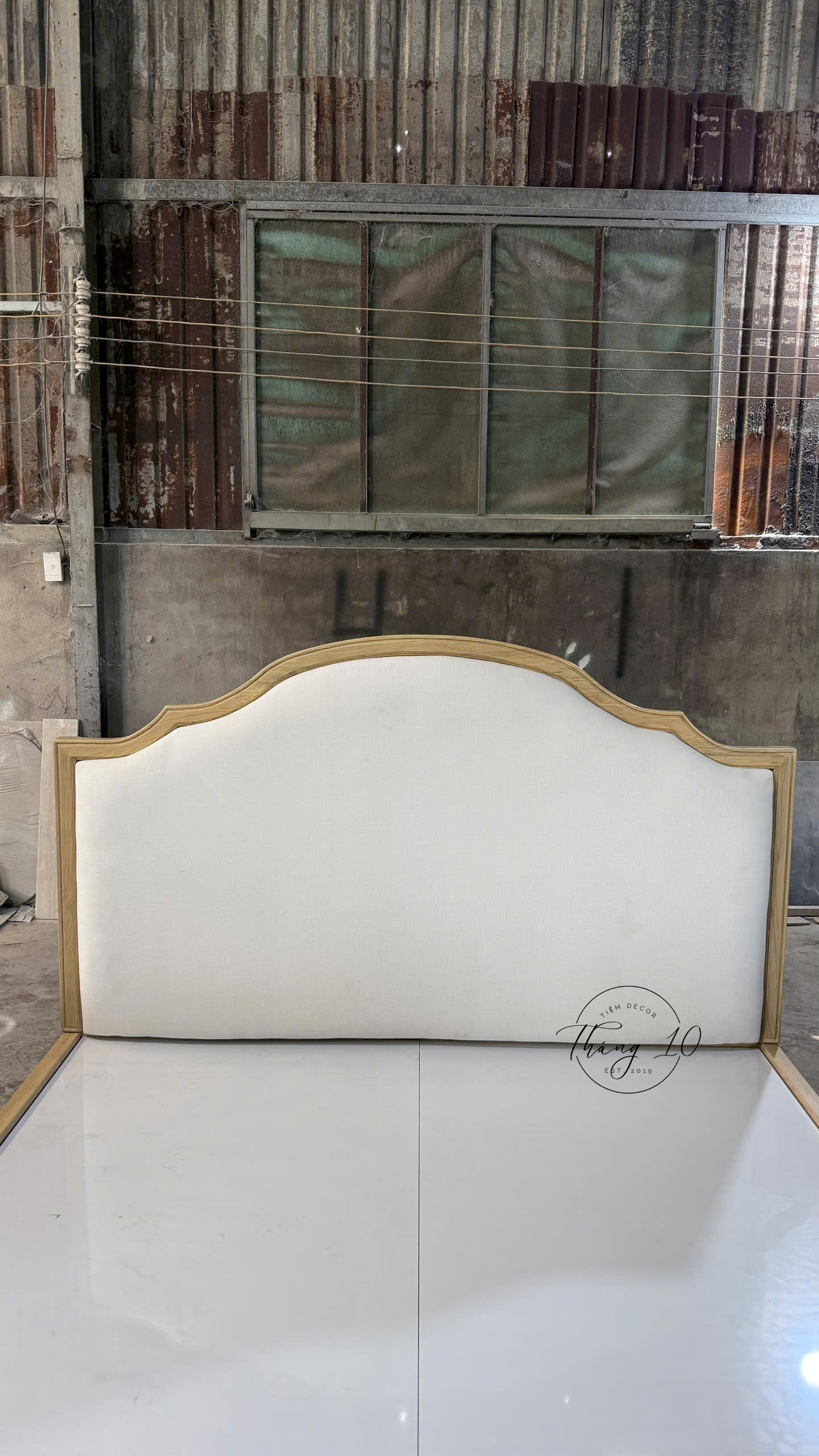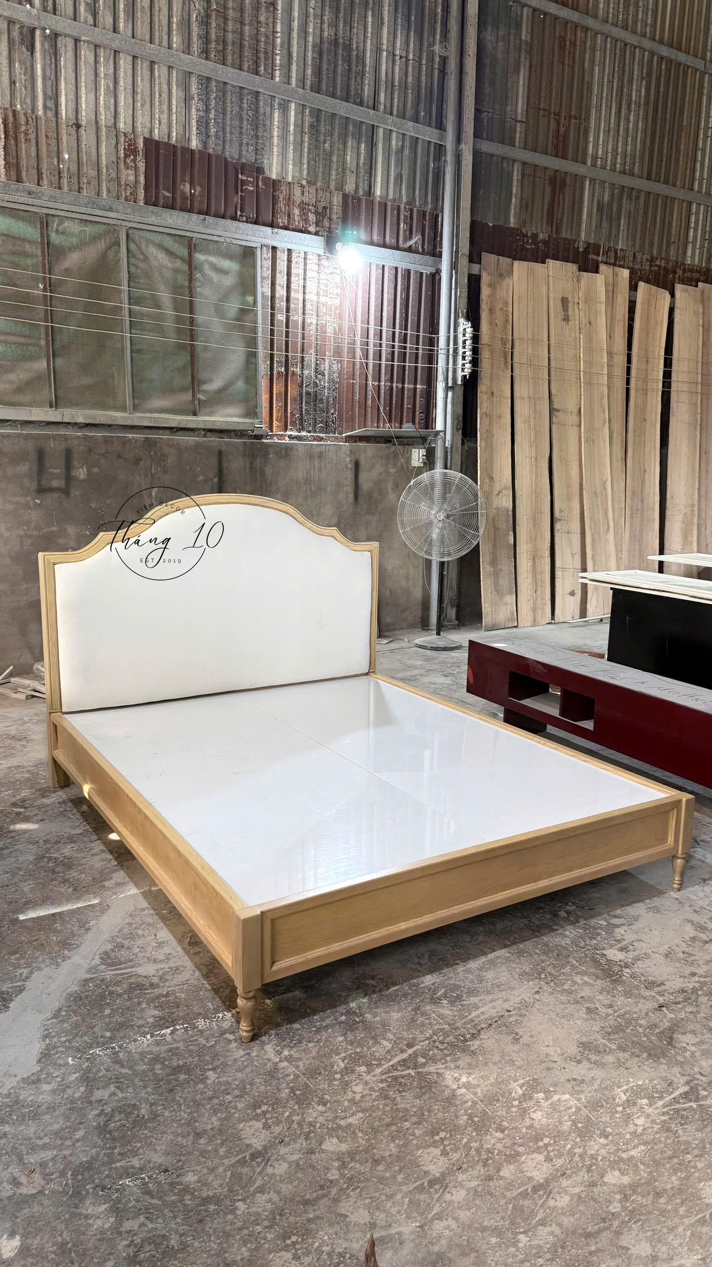 Giường Gỗ Tân Cổ Điển Farmhouse, Đầu Giường Bọc Đệm Cấp – Liên Hệ Trước Khi Đặt Hàng Không Có Sẵn