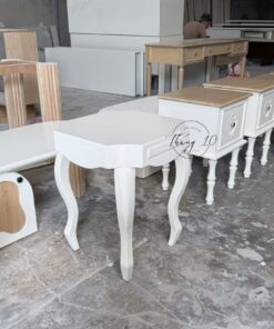 Side Table/ Tab Đầu Giường Gỗ Chân Qùy Farmhouse Tân Cổ Điển, Ngăn Kéo Giả – Liên Hệ Trước Khi Đặt Hàng Không Có Sẵn