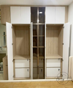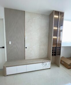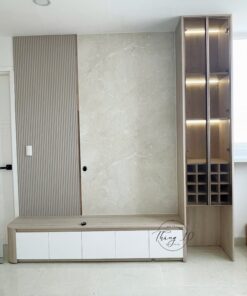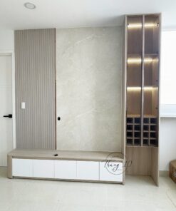 ▪️ Chất liệu: Gỗ MDF chống ẩm phủ melamine của An Cường, vách lam Kosmos