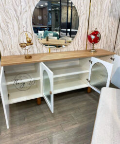▪ Chất liệu: Chân gỗ tự nhiên, còn lại Gỗ công nghiệp MDF lỏi xanh chống ẩm, kính sọc
